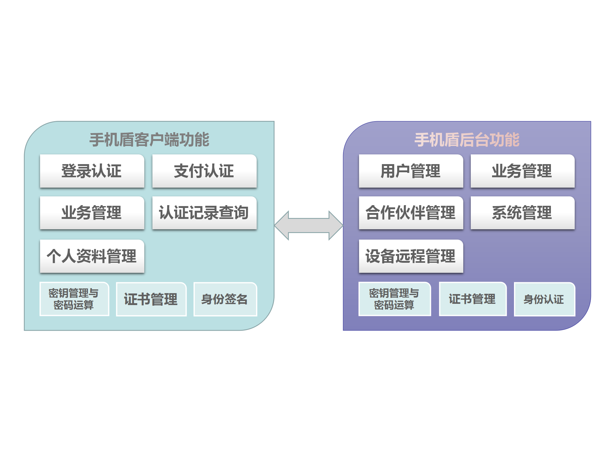 手機(jī)盾客戶端功能主要包括:登錄認(rèn)證、支付認(rèn)證、業(yè)務(wù)管理、認(rèn)證記錄查詢、個(gè)人資料管理、密鑰管理與密碼運(yùn)算、證書管理、身份簽名。