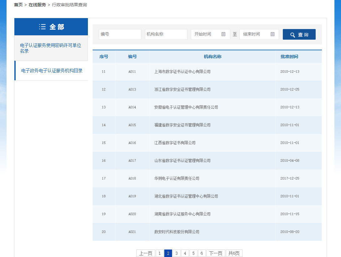從事電子政務(wù)電子認(rèn)證服務(wù)的機(jī)構(gòu),應(yīng)進(jìn)入國家密碼管理局發(fā)布的《電子政務(wù)電子認(rèn)證服務(wù)機(jī)構(gòu)目錄》。