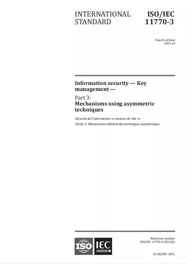 2021年10月22日,我國SM9密鑰協(xié)商協(xié)議作為國際標準ISO/IEC 11770-3:《信息安全 密鑰管理 第3部分:使用非對稱技術的機制》2021版的一部分正式發(fā)布,并發(fā)表于ISO/IEC官方網(wǎng)站(詳情頁www.iso.org/standard/82709.html)。該標準是繼SM9數(shù)字簽名算法、SM9標識加密算法成為國際標準后發(fā)布的第三個包括SM9算法的國際標準。至此,SM9算法成為中國密碼技術領域首個全體系納入ISO/IEC標準的非對稱密碼算法。該標準的發(fā)布標志著我國商用密碼算法國際標準體系進一步完善,展現(xiàn)了我國先進的密碼科技水平和國際標準化能力,有助于增強我國密碼產(chǎn)業(yè)在國際上的競爭力。