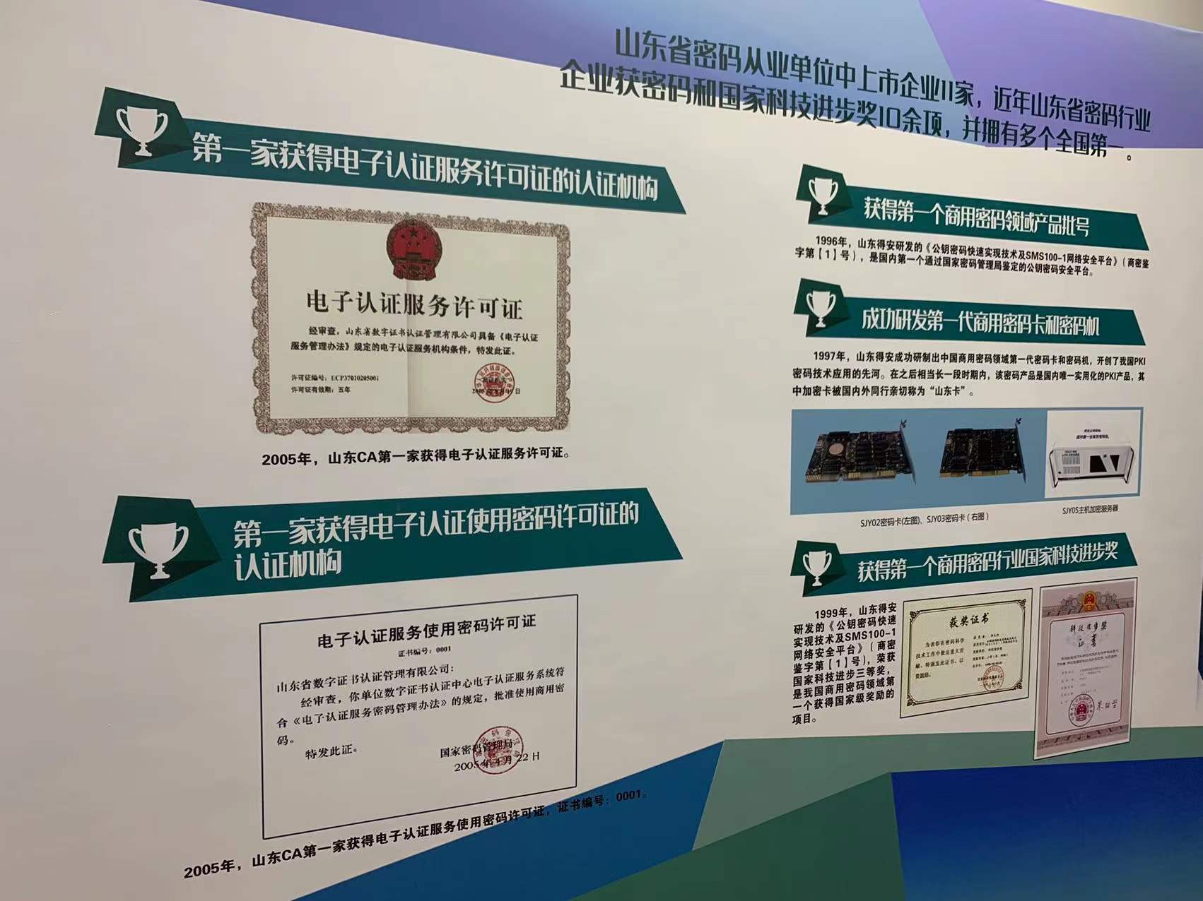 值得一提的是,山東CA有多項內(nèi)容入選“商用密碼創(chuàng)新與成果”版塊多個展區(qū)。在“山東開創(chuàng)全國第一”展區(qū),山東CA于2005年取得的全國第一張“電子認證服務(wù)許可證”和“電子認證服務(wù)使用密碼許可證”赫然在目;“國密SIM卡型硬件盾(SIM Key)”以其先進性、安全性、便利性和重要的推廣價值,成功入選“商密創(chuàng)新產(chǎn)品”實物展區(qū);山東CA“國家級政務(wù)云密碼應(yīng)用試點”和“電子報到證”分別作為政務(wù)和教育領(lǐng)域成功實施并取得重要經(jīng)濟效益和社會效益的典型應(yīng)用,入選“案例展示”展區(qū)。