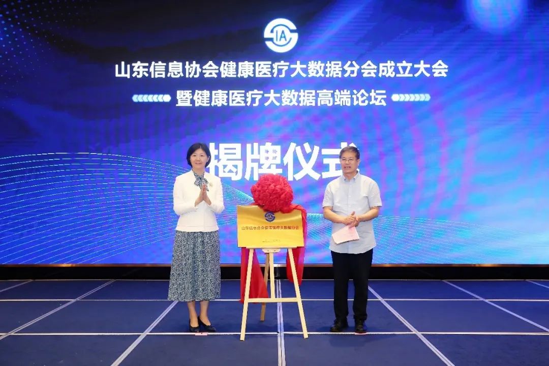 山東健康醫(yī)療大數(shù)據(jù)管理中心黨委書記、主任遲蔚蔚(左)與山東信息協(xié)會(huì)執(zhí)行會(huì)長(zhǎng)王存祥(右)共同為山東信息協(xié)會(huì)健康醫(yī)療大數(shù)據(jù)分會(huì)揭牌