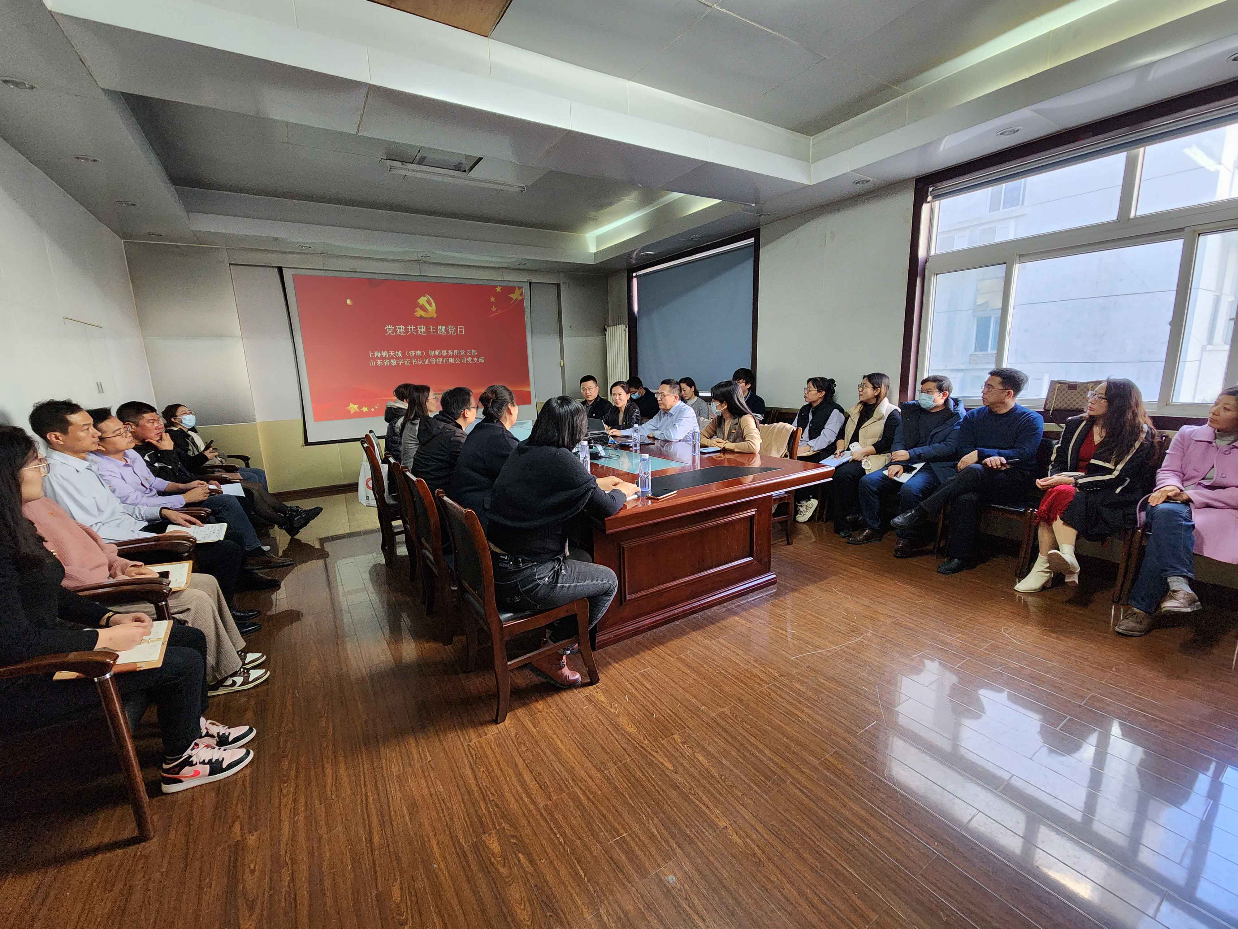 為充分發(fā)揮“黨建共建”的橋梁和紐帶作用,進(jìn)一步推進(jìn)、鞏固和擴(kuò)大習(xí)近平新時代中國特色社會主義思想主題教育活動常態(tài)化成果,努力構(gòu)建“資源共享、優(yōu)勢互補(bǔ)、互相促進(jìn)、共同提高”的黨建工作新格局,2023年12月8日,山東省數(shù)字證書認(rèn)證管理有限公司黨支部聯(lián)合上海錦天城(濟(jì)南)律師事務(wù)所(以下簡稱“錦天城濟(jì)南”)黨支部開展黨建共建活動。
